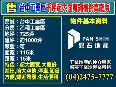 經紀業:磐石地產實業有限公司經紀人證號:101年中市經紀字第00896號 磐石地產 台中市南屯區大墩五街6號 請洽 0961-528-528 LINE ID: 0961528528