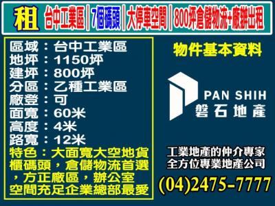 • 台中工業區|7個碼頭|大停車空間|800坪倉儲物流+廠辦出租圖片(1)