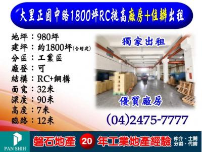 ✅ 正國中路稀有大坪數RC挑高優質廠房,天車牛腿貨梯一應俱全。
